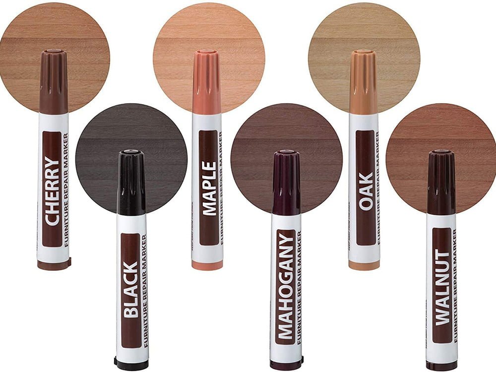 Popravilo izvedemo tako, da globljo napako zapolnimo z voskom in z ustrezno barvo markerja zarišemo strukturo lesa . Po nanosu kompleta za popravilo vam ni treba čakati, da se vse posuši. Markerji se hitro sušijo, popravljeni premaz pa je odporen na praske.