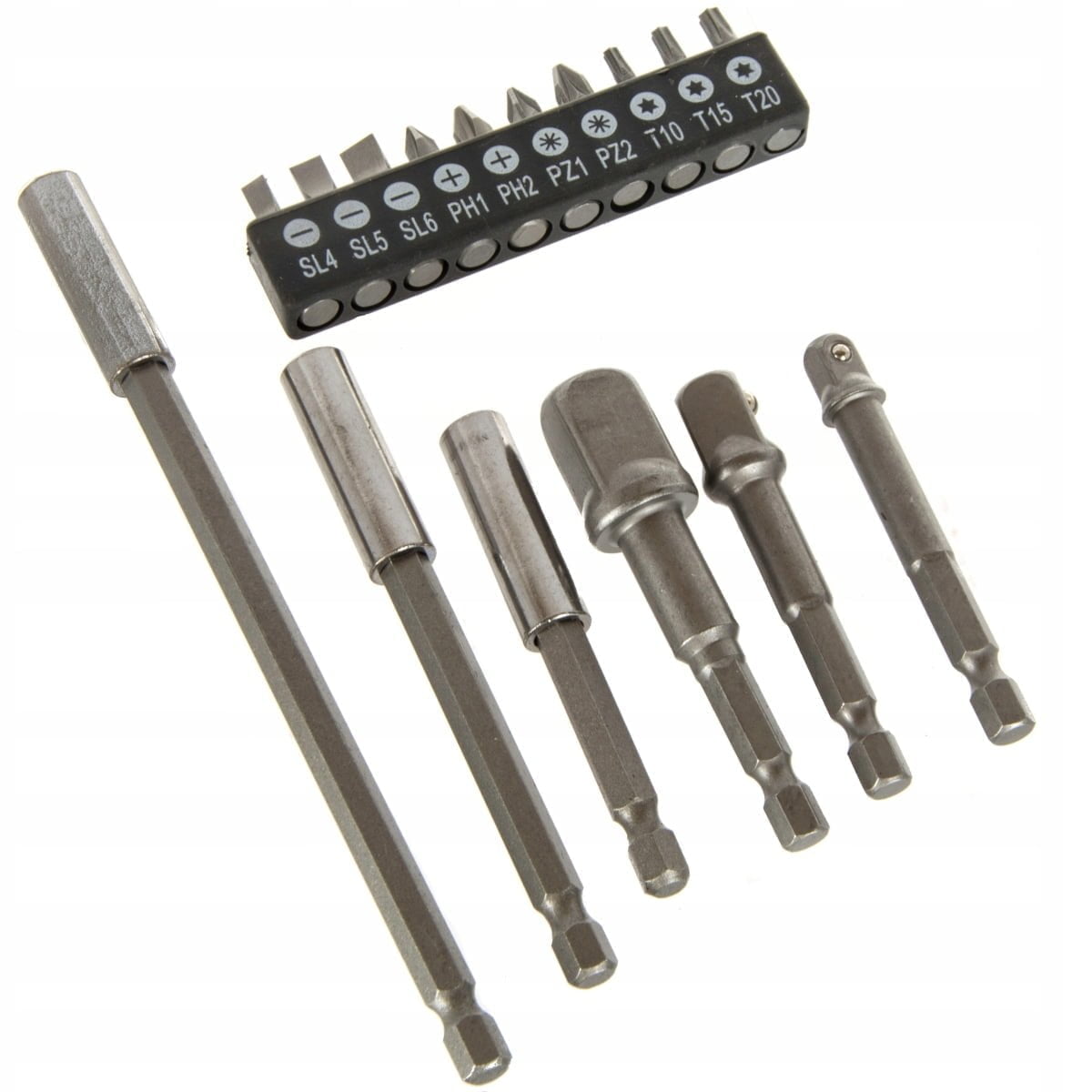 Komplet 10 profesionalnih nastavkov 25 mm 1/4″ s 3 podaljški in 3 adapterji za izvijač.