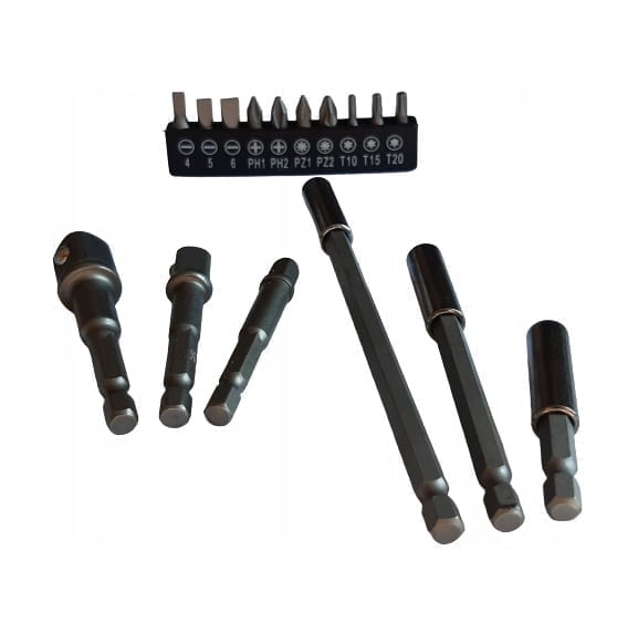 Set vključuje različne velikosti HEX nastavkov, ki so primerni za širok spekter vijakov in matic. Ne glede na to, ali gre za manjše popravilo v gospodinjstvu ali zahtevnejše delo na gradbišču, boste imeli pravi nastavek vedno pri roki. Poleg tega so priloženi tudi adapterji, ki omogočajo uporabo nastavkov z različnimi vrstami vrtalnih strojev.