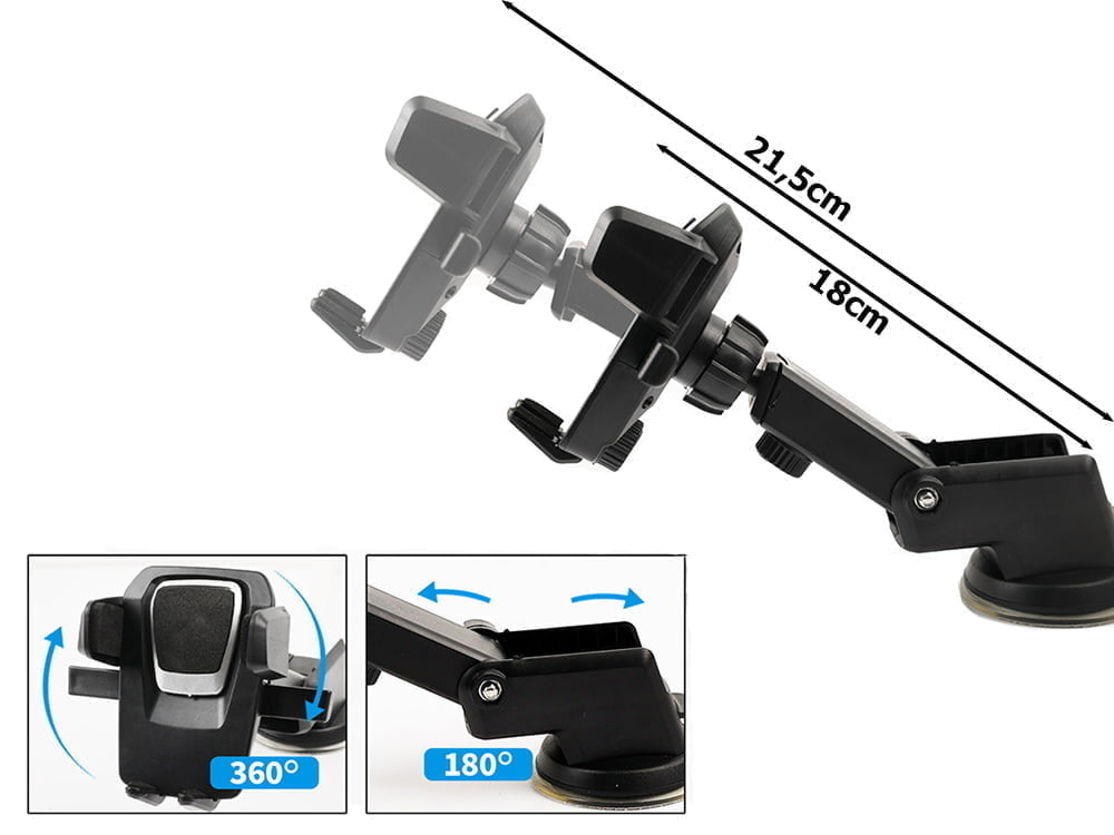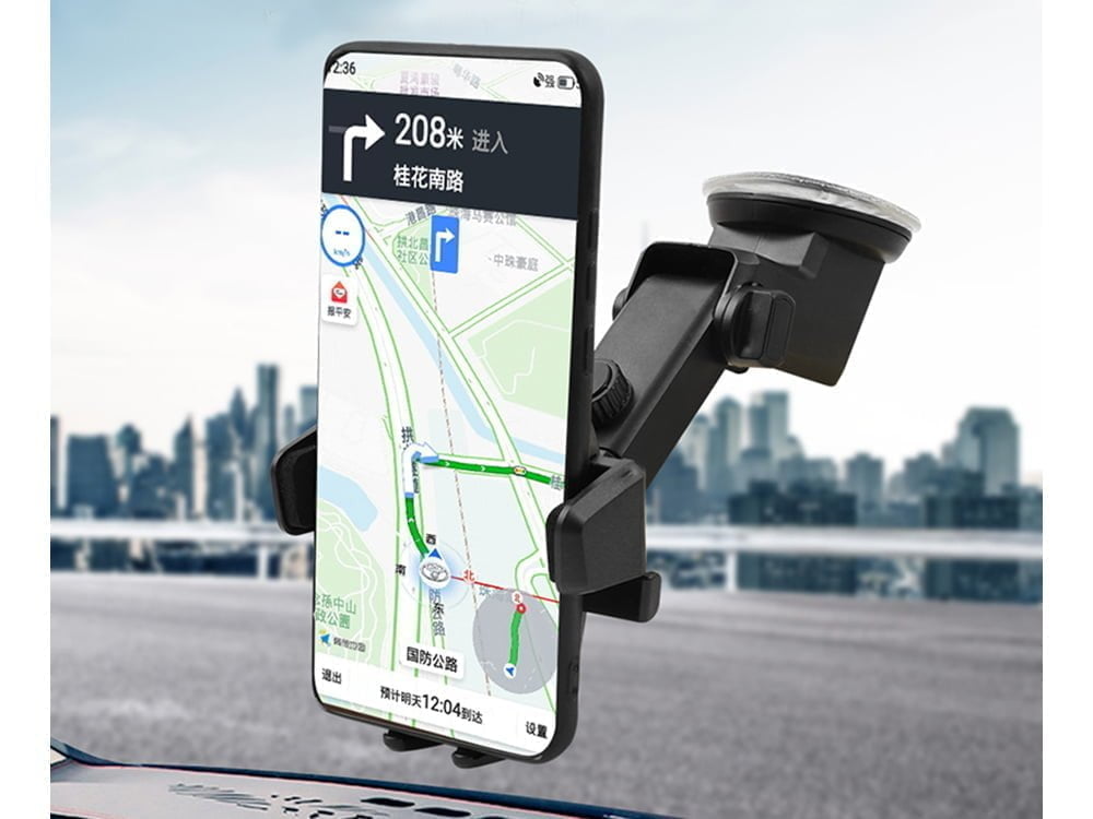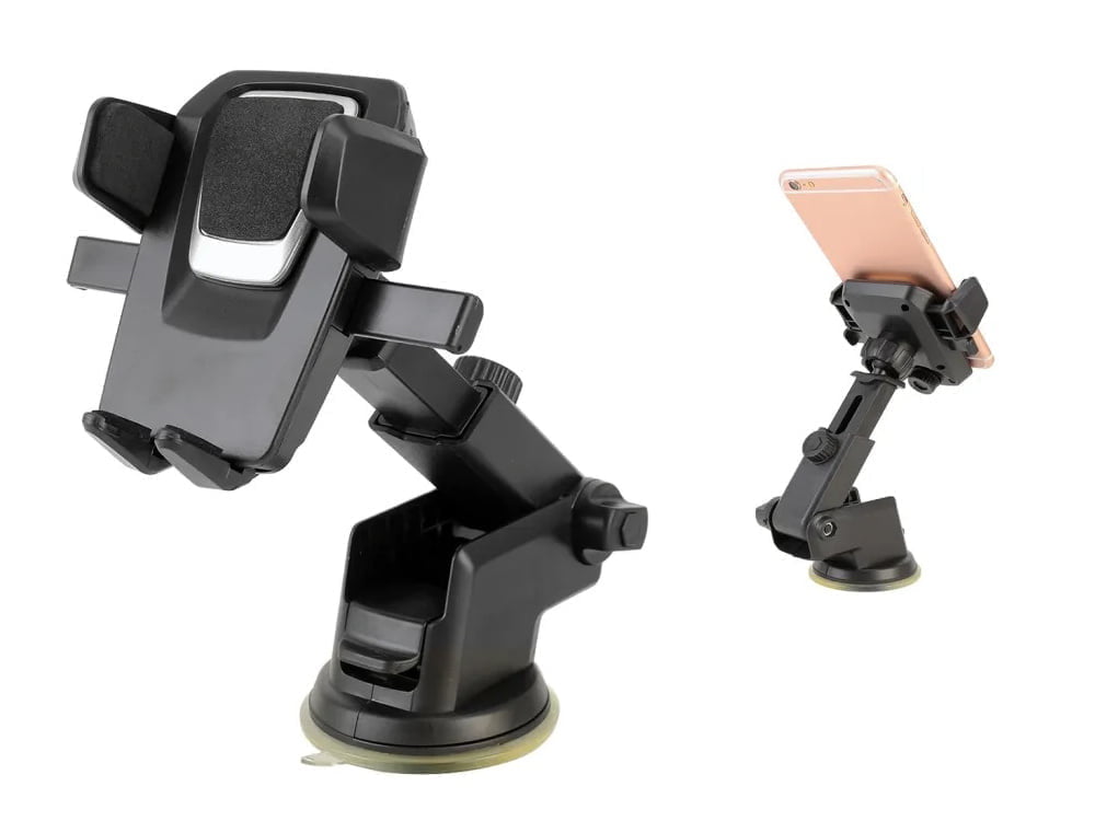 Univerzalno avtomobilsko držalo, idealno za pritrditev na vetrobransko steklo. Prisesek drži zelo trdno in ima poseben sistem pritrditve, ki preprečuje, da bi padel.