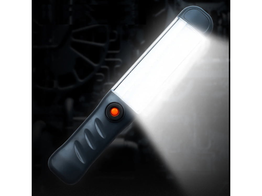 Ergonomska oblika svetilke zagotavlja udobje uporabe tudi pri daljšem držanju. Zaradi udobnega ročaja se svetilka popolnoma prilega vaši roki. Uporaba 48 LED diod COB zagotavlja močno in enakomerno osvetlitev, ki je popolna za različne situacije. Zdaj bo vsak kotiček vaše delavnice popolnoma viden