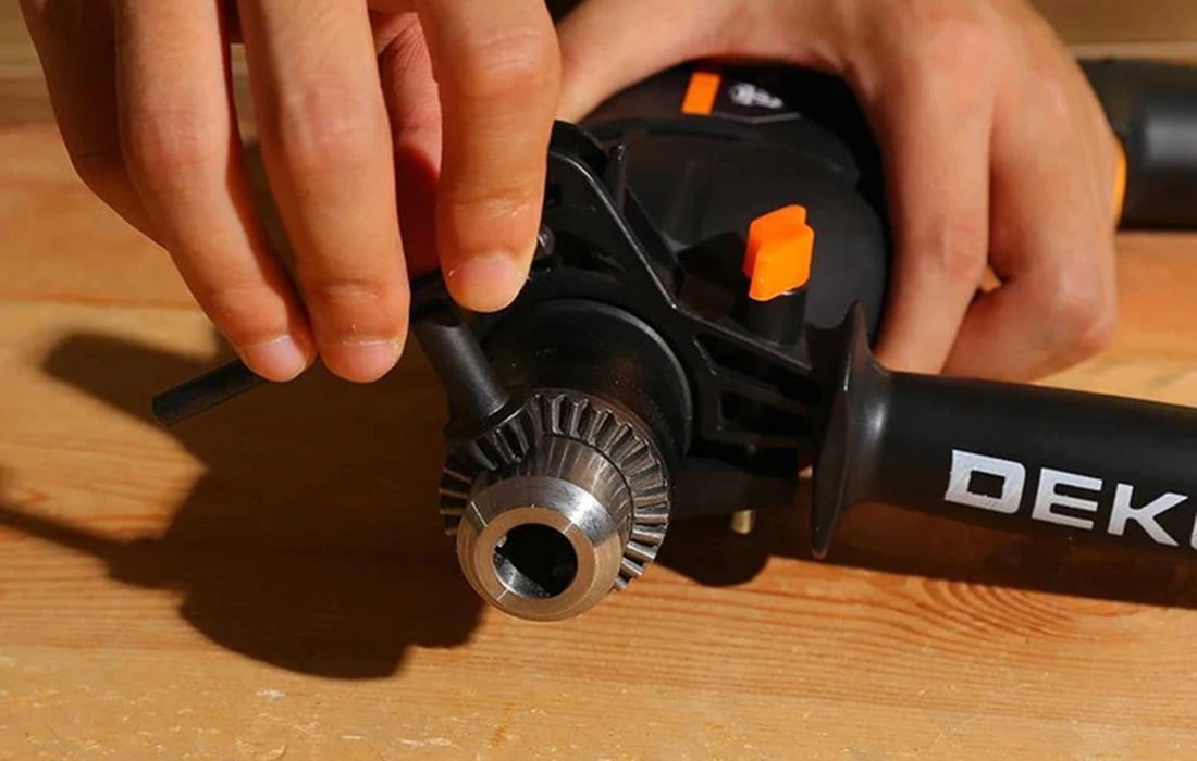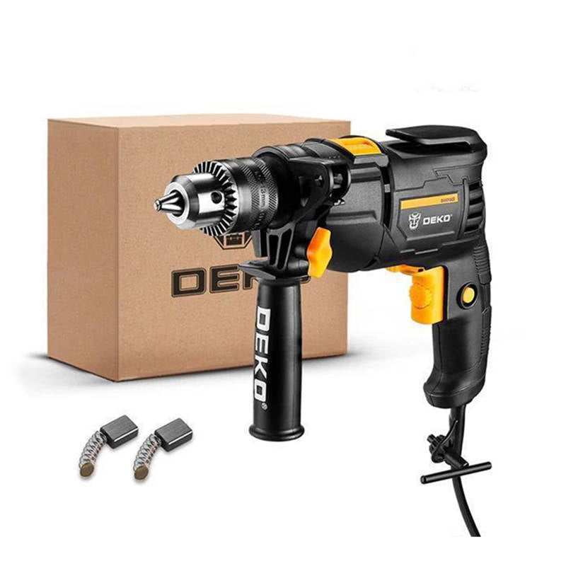 Deko Tools vrtalnik je opremljen z 710 W motorjem, tako da ga lahko uporabljate za vrtanje jekla, betona ali lesa. Ima tudi gumb, s katerim lahko prilagodite hitrost izvijača ali pa s posebnim stikalom preklopite njegovo smer v levo ali desno. Poleg tega bo zaklep sprožilca zagotovil udobje med dolgotrajno uporabo.