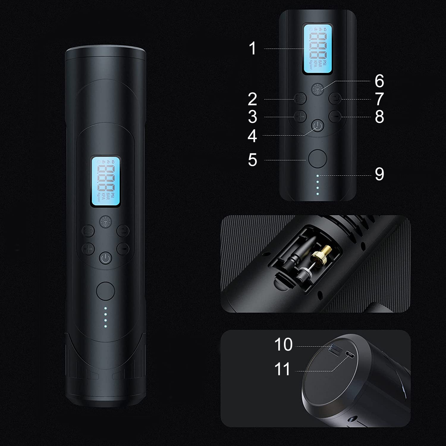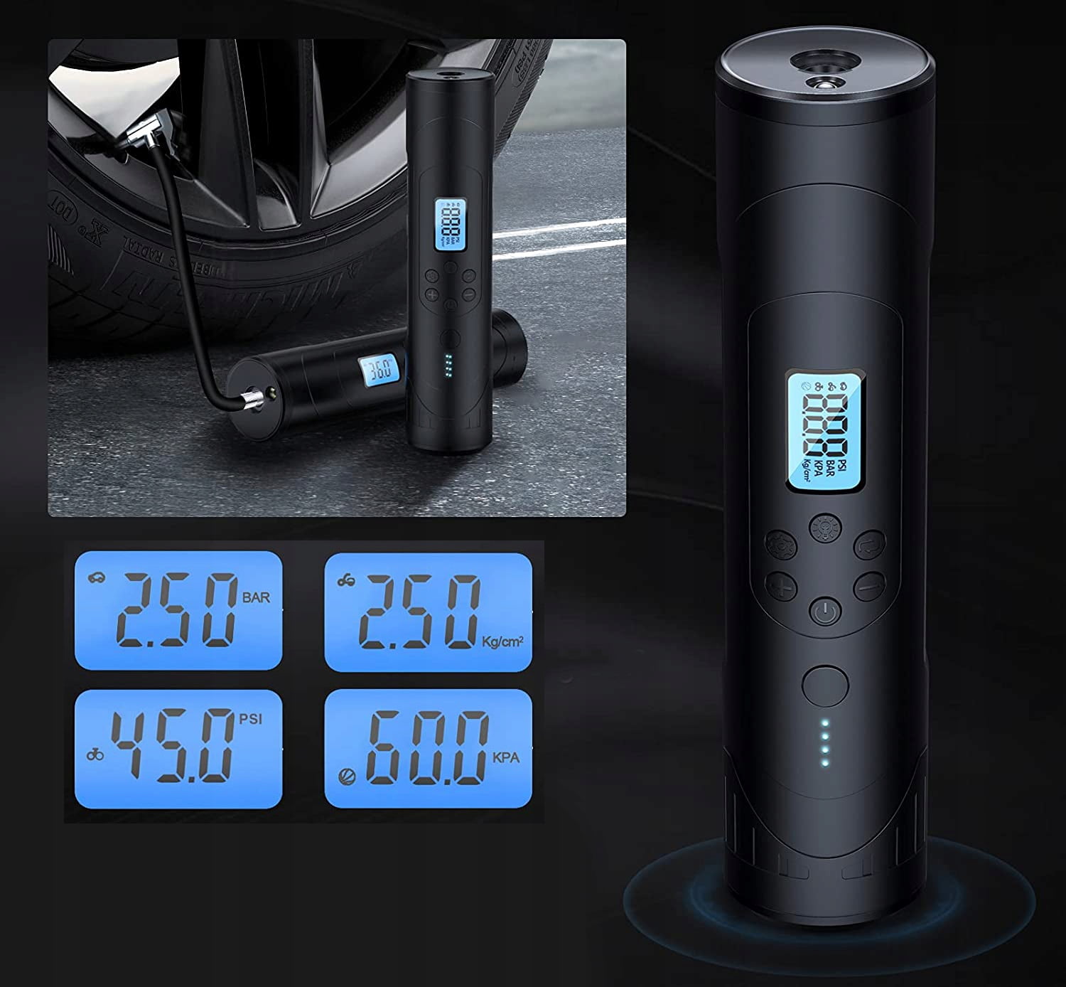 Akumulatorski 4500mAh prenosni LCD kompresor z LED osvetlitvijo in zmogljivostjo do 10 Bar je popoln pripomoček za vse, ki iščete zanesljivo in prenosno rešitev za napihovanje. Ta vsestranski kompresor je opremljen z močnim 4500mAh akumulatorjem, ki omogoča enostavno napihovanje avtomobilskih pnevmatik, koles, motornih gum, žog in drugih napihljivih predmetov, ne da bi potrebovali električno vtičnico.