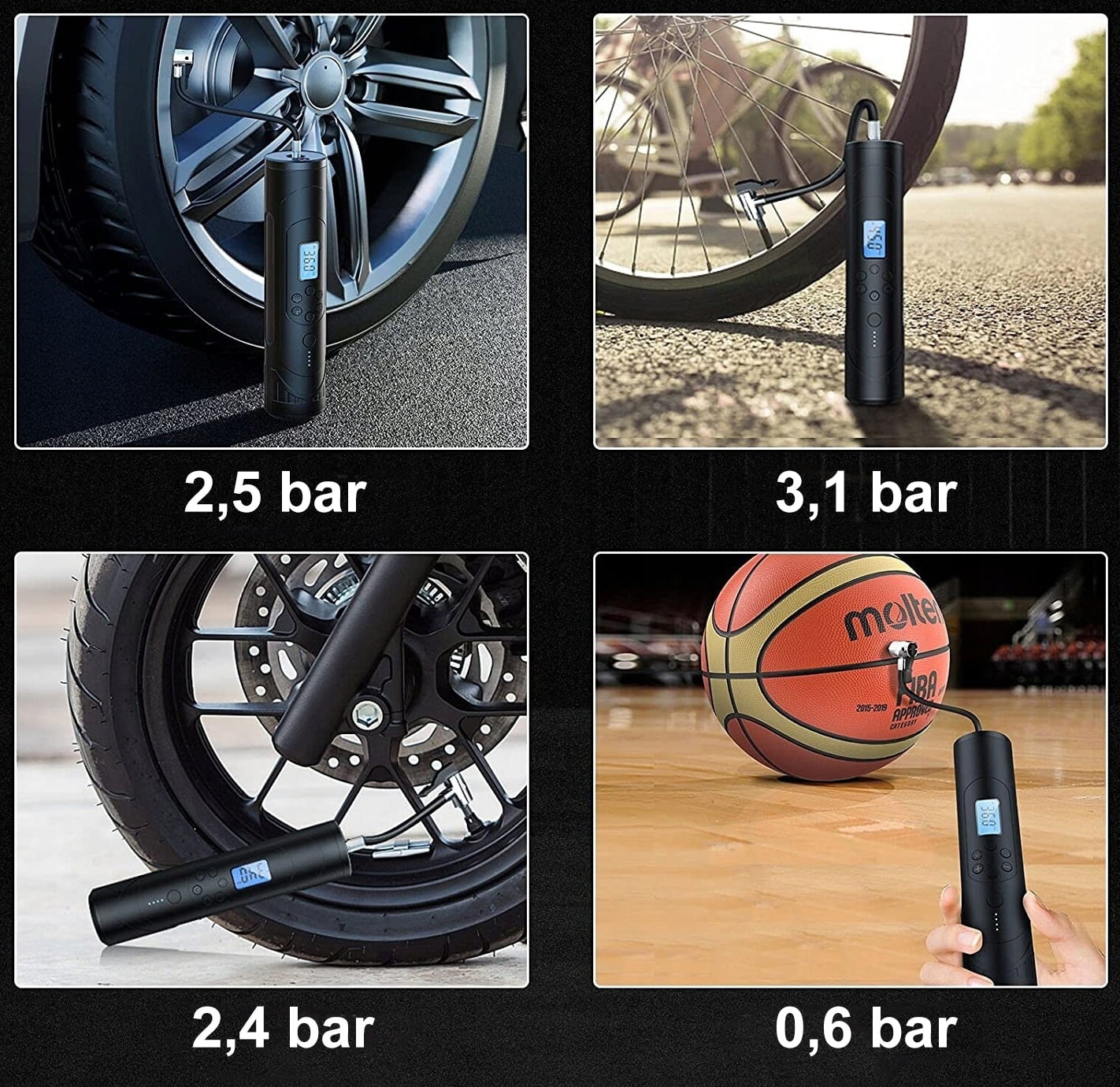 – 4 programirane nastavitve tlaka (avto, motocikel, kolo, žoga)