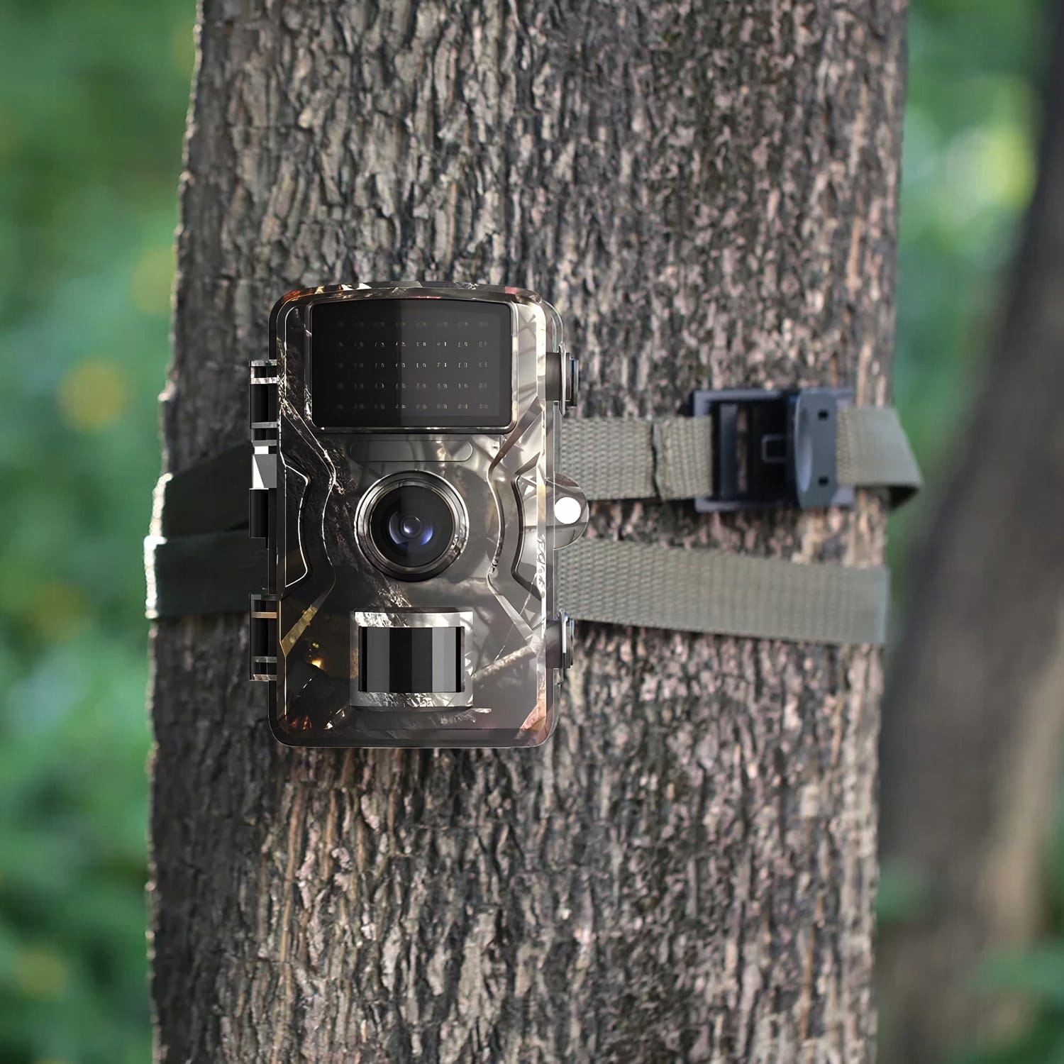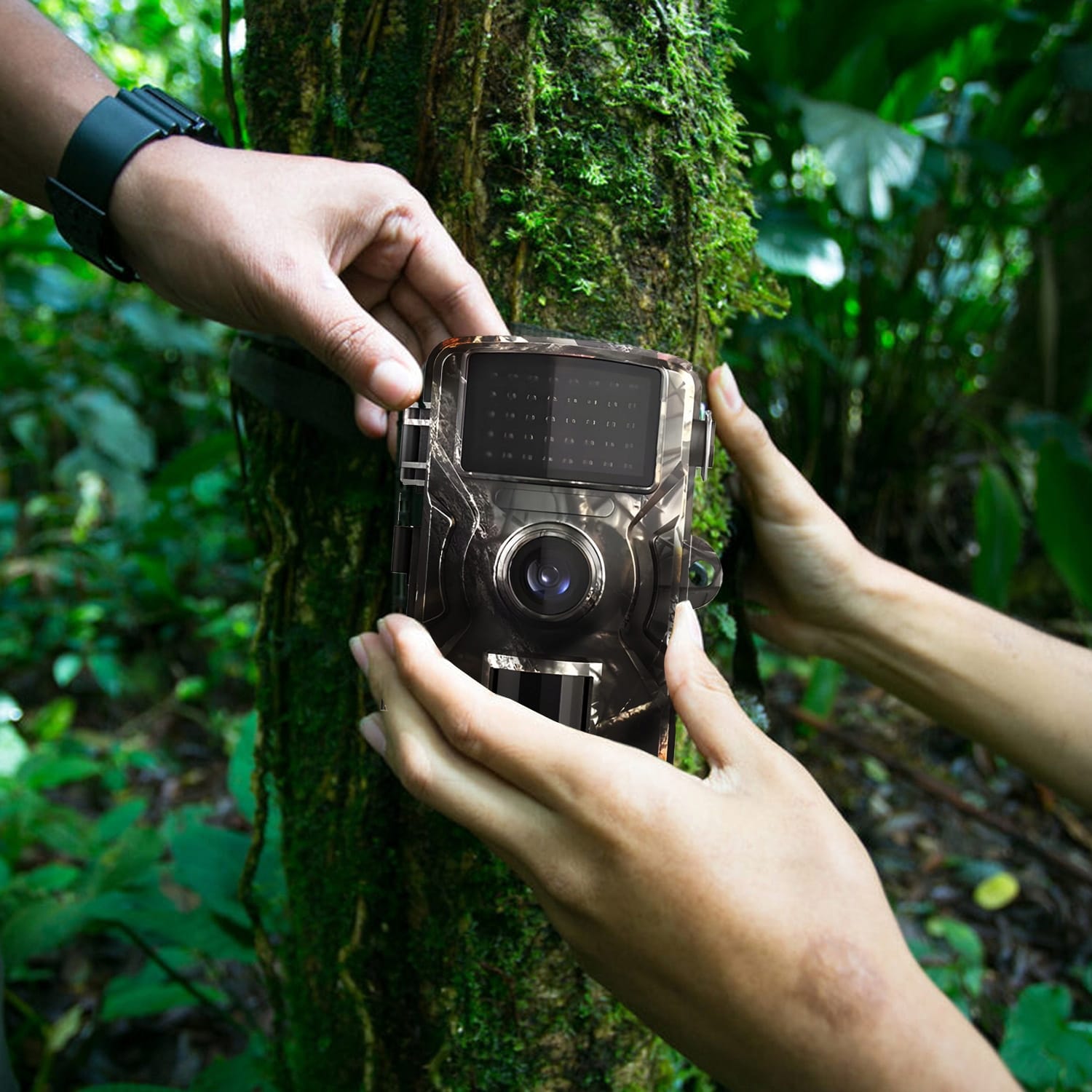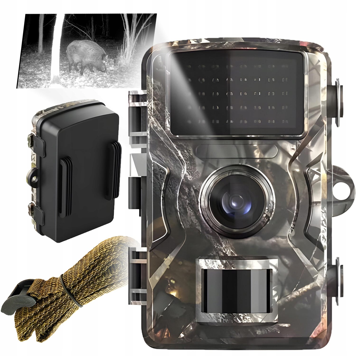 - Pritrdilni trak – omogoča hitro in enostavno pritrditev kamere na drevo, cesto ali drugo površino.