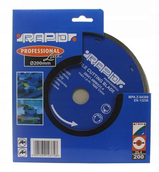 Diamantno rezilo za obdelavo gradbenih materialov: beton, opeka, tlakovci, klinker, porobeton, keramične ploščice.