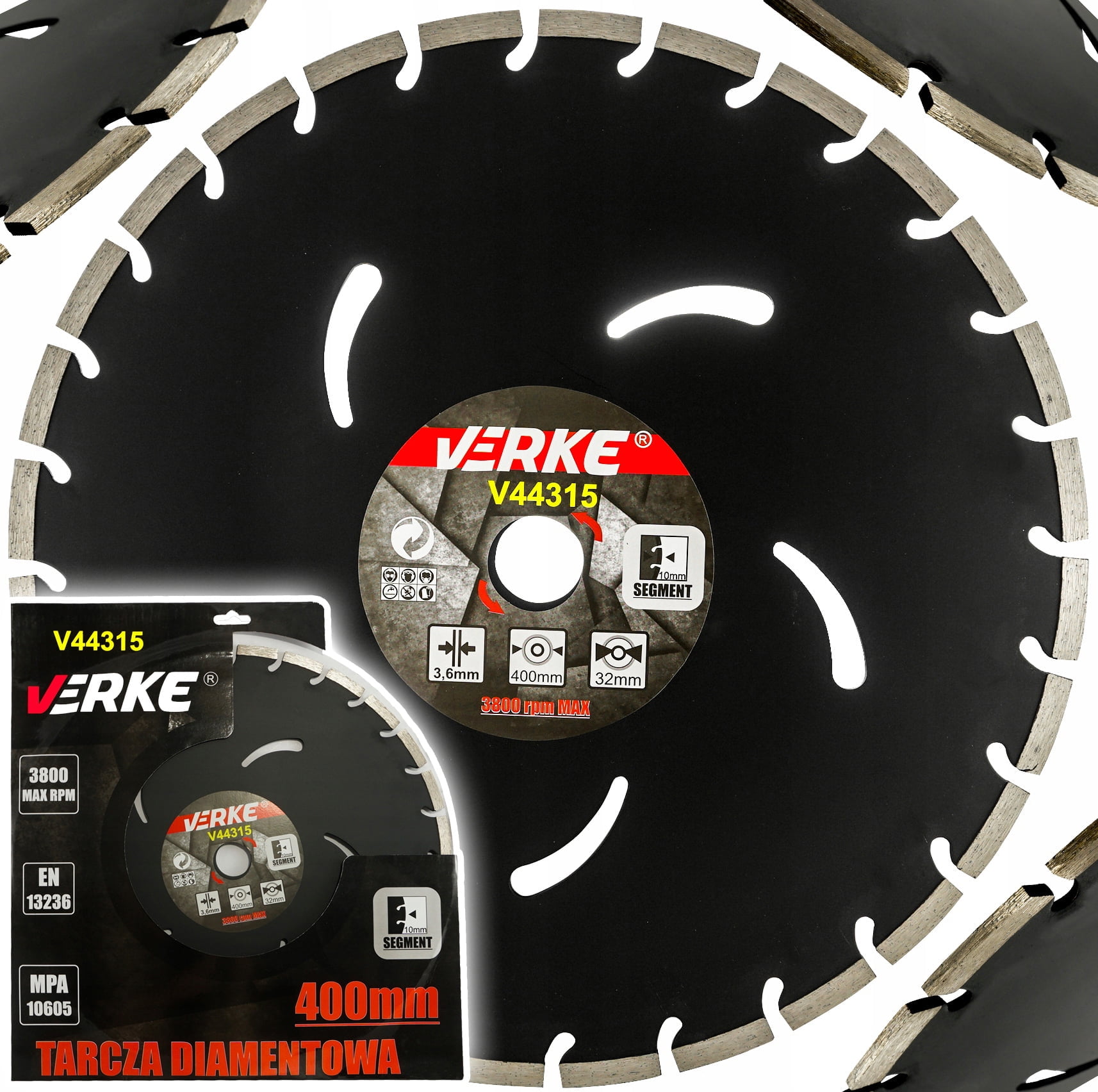 Profesionalno segmentirano diamantno rezilo VERKE se uporablja za rezanje trdih gradbenih materialov. Posebna oblika roba diamantnega rezila zagotavlja večjo hitrost rezanja v najtrših materialih brez žrtvovanja kakovosti končne obdelave. V kompletu prejmete o-tesnilo za zmanjšanje notranjega premera. Zasnovan za suho delo s kotnimi brusilniki. Z njim lahko režete beton, opeko, keramične ploščice, klinker, tlakovce. Rezilo ima segmentirano rezilo, ki olajša odstranjevanje umazanije in omogoča enostavno delo v trdih, agresivnih tleh. Rezila VERKE so najboljša izbira za najzahtevnejša dela. Rezilo za mokro in suho rezanje.
