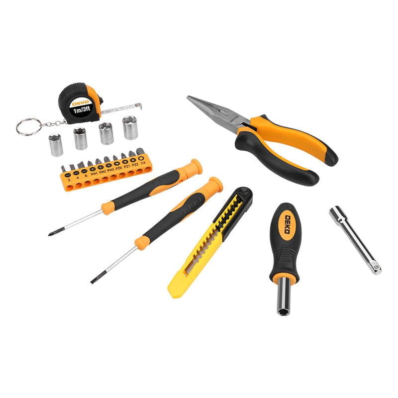 Potrebujete vsestranski set za svojo domačo delavnico? Set orodij Deko Tools TZ21 bo deloval odlično! Priročen in funkcionalen set orodja vam bo olajšal delo. Vsebuje kar 21 kosov orodja. Med njimi nož z zlomljenim rezilom, dolge klešče, merilni trak ali 2 natančna izvijača itd. Predmeti so izdelani iz visokokakovostnih materialov in zagotavljajo udobno uporabo. Vsi elementi kompleta so nameščeni v praktičnem kovčku, zaradi česar je njihovo shranjevanje enostavno in udobno.