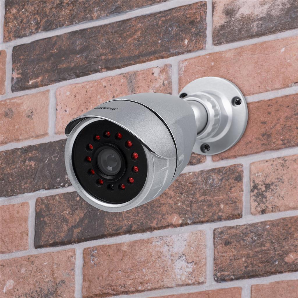 Odvrnite nepovabljene goste z navidezno kamero Smartwares CDM-34552. Zahvaljujoč kovinskemu ohišju se lažna kamera ne razlikuje od prave kamere in ima vgrajene infrardeče LED. LED diode dajejo nepovabljenim gostom vtis, kot da jih snemajo.Bodite korak pred tatovi in pritrdite navidezno kamero, da jih odvrnete. Z rdečo utripajočo LED diodo je videti, kot da navidezna kamera deluje. Ni razloga za nakup dragega sistema kamer – preprosto prestrašite vlomilce z navidezno kamero. Lažno kamero napajata dve AAA bateriji (nista priloženi) in jo je enostavno sestaviti z le nekaj vijaki.