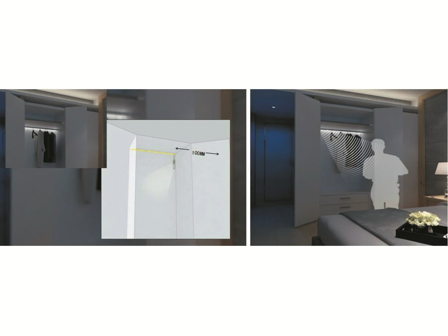 LED trak, dolžine 1 meter, hladno bel (5000K). V kompletu z napajalnim modulom (baterija). Set ima vgrajen senzor mraka in gibanja (PIR). Fizično stikalo vam omogoča, da trajno izklopite trak. Dva načina delovanja prilagojena potrebam uporabnika (avtomatski in ročni). Zaradi svoje majhnosti je trak popoln za osvetlitev notranjosti garderobnih omar ter kotičkov pod in za pohištvom.