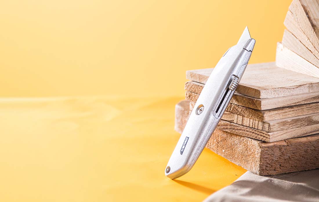 Ergonomska oblika zagotavlja trden oprijem in udobno uporabo, čvrst plastični gumb pa omogoča spreminjanje dolžine rezila.