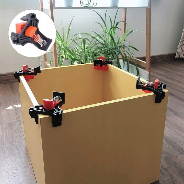 Komplet 4 sponk, zagotavlja hitro in enostavno pritrjevanje desk in okvirjev itd. pod kotom 90°.