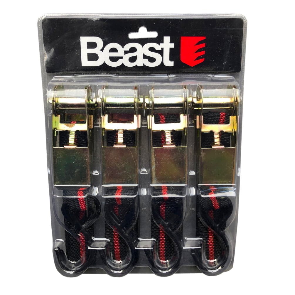 Set 4 trakov za privezovanje z ragljo in kavljem. Enostavna namestitev s hitrim zategovanjem zaskočne zanke.