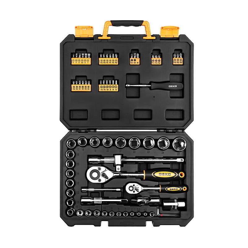Praktičen komplet orodij Deko Tools DKMT72 je idealen za vsak dom in olajša popravila in domača dela. Vsebuje do 72 elementov, ki jih odlikuje solidna izdelava in vsestranska uporabnost. Pakirani so v praktični, priročni škatli za enostavno shranjevanje in transport. V kompletu boste med drugim našli 1/4″ nasadni nosilec, ragljo in imbus ključe, podaljške, 3-x glavo in še veliko več.