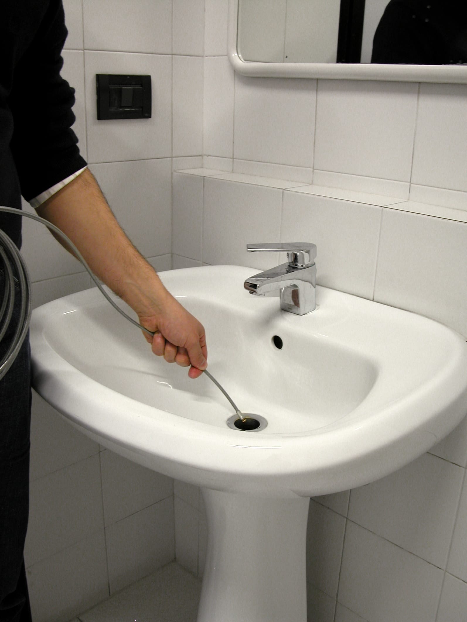 - Nadzor: Počasi in z enakomernim gibanjem premikajte cev po odtoku. Lahko jo tudi večkrat potegnete nazaj in spet naprej, da se zamašitev popolnoma razbije in izpere.