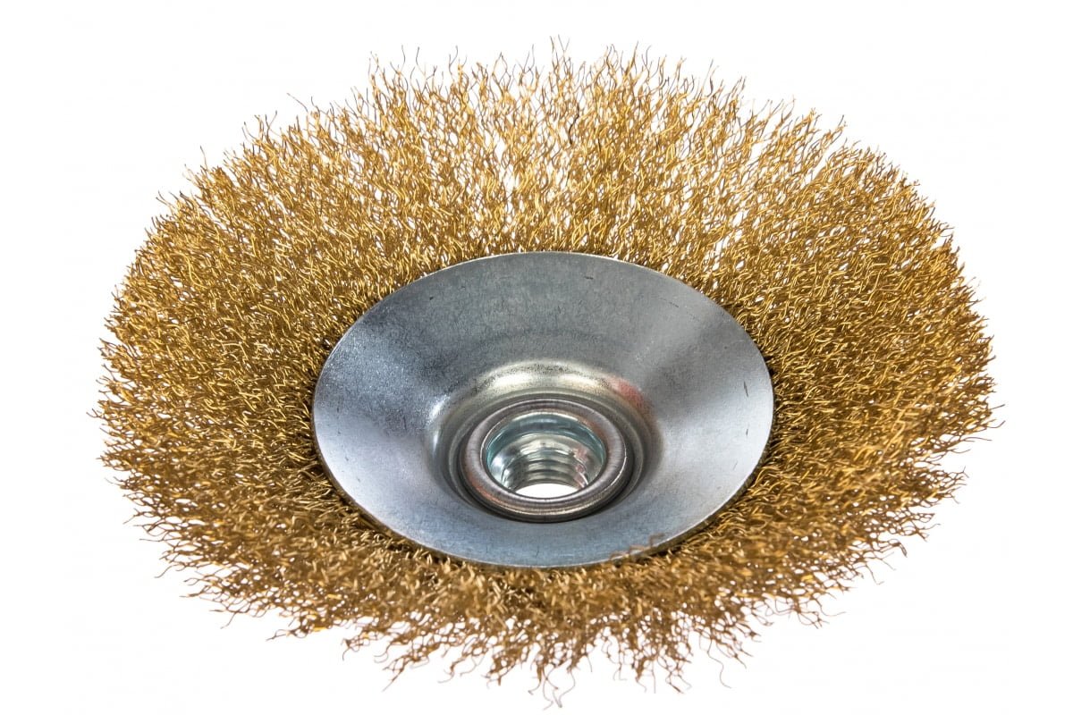 Ta univerzalna medeninasta krtača premera 125 mm ima gosto zavite in utrjene medene žice, ki so idealne za odstranjevanje rjave, barve in lupine z metalnih površin. Navoj M14 omogoča priklop na večino brusilk za rezkanje in kotnih brusilk. Kompaktna izvedba premera 5 palcev omogoča uporabo za odstranjevanje ostrih robov, poliranje in končno obdelavo v ozkih prostorih.