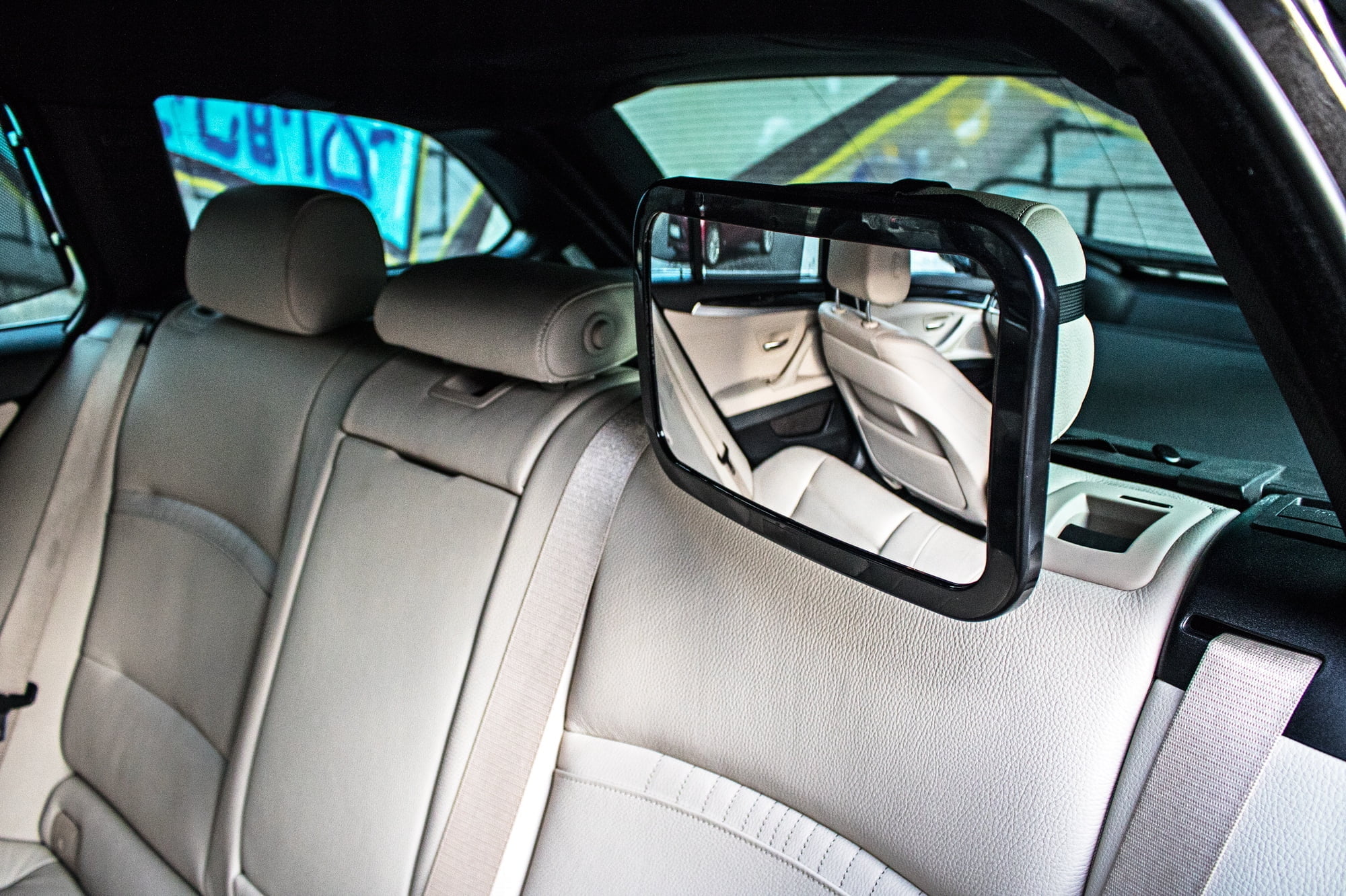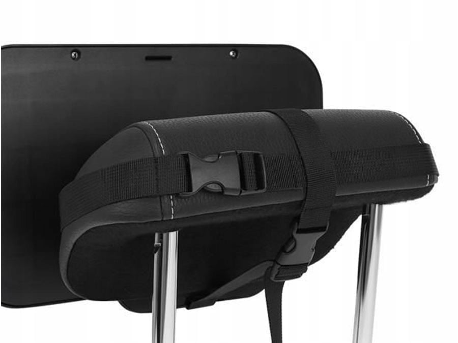 - 4 TRAKOVI – NAŠ MODEL ima 4 trakove, pritrjene navpično in vodoravno, ki se trdno držijo vzglavnika in se ne zrahljajo; nikakor ne bo ogledalo zdrsnilo in padlo na otroka! Trakovi se zapenjajo z zaponkami, poleg tega imajo nastavljive , zaradi česar se prilegajo vsakemu modelu vzglavnika, ne glede na znamko in velikost avtomobila. Podnožje, ki se namesti na vzglavnik Ima nedrsečo površino, ki ogledalo dodatno ščiti pred premikanjem.