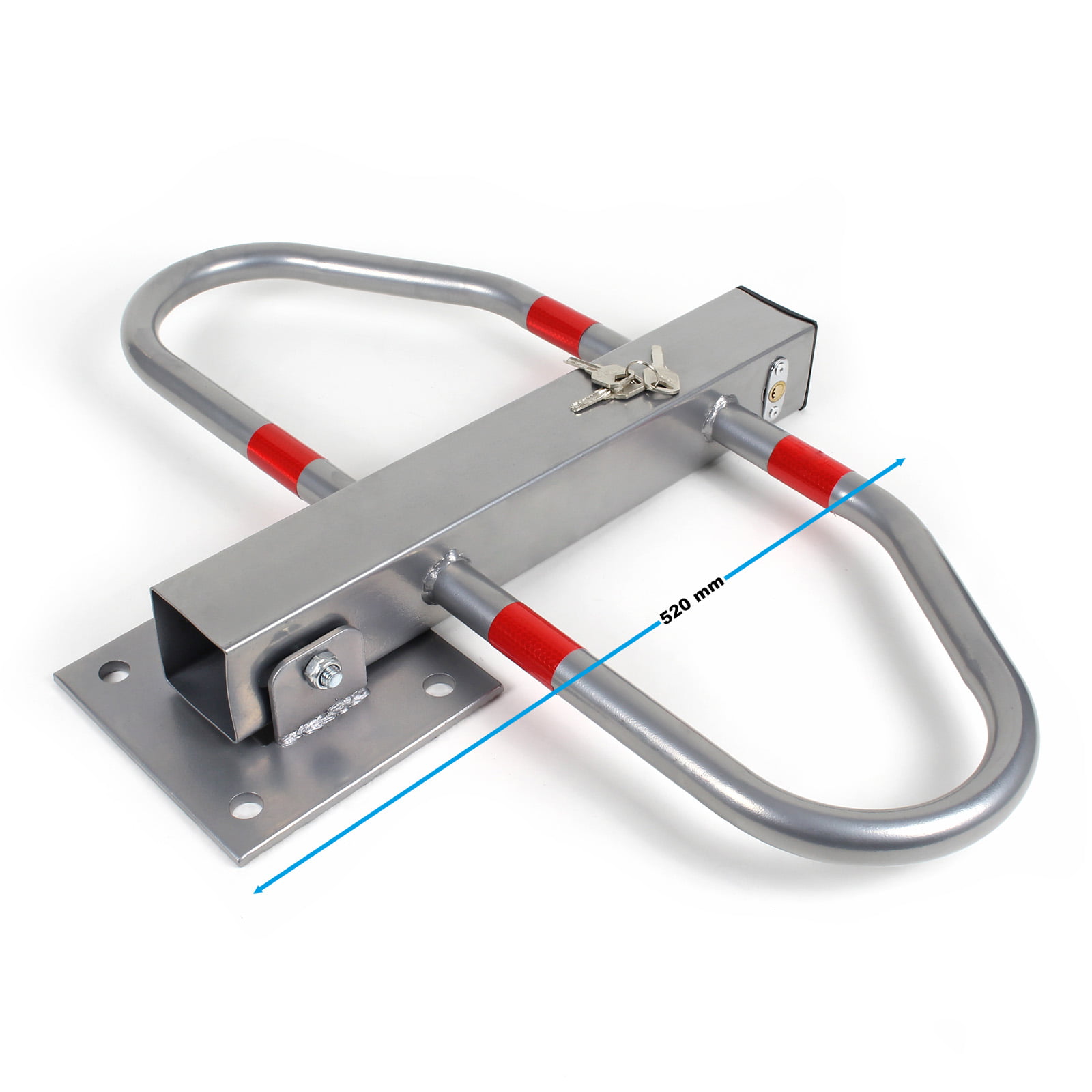 Praktično je, da je parkirna zapora zložljiva. To pomeni, da lahko svoj dovoz ali parkirni prostor uporabljate kot običajno in po potrebi preprosto premaknete nosilec. A to je mogoče samo za tiste, ki imajo ključ do ključavnice. To pomeni, da če vas ni doma, noben tujec ne more zložiti šanka in uporabiti parkirnega mesta. Ker brez ustreznega ključa ni mogoče sprostiti parkirne zapore.